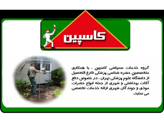 گروه خدمات سمپاشی کاسپین ، با همكاری متخصصین حشره شناسی پزشكی فارغ التحصیل از دانشگاه علوم پزشكی تهران ، در خصوص دفع آفات بهداشتی و شهری از جمله انواع حشرات موذی و جوندگان شهری ارائه خدمات تخصصی می نماید و آمادگی خود را جهت ارائه تیمهای سمپاشی و ریشه کنی حشرات نظیر سوسک ، ساس ، موش و ... اعلام میدارد .
