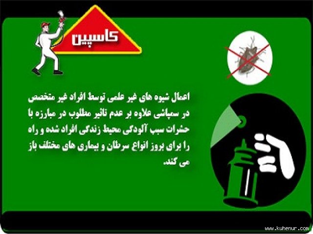سمپاشی کاسپین با اتکا به تخصص علمی و تجربیات خود در خدمت شماست. گروه خدمات سمپاشی کاسپین ، با همكاری متخصصین حشره شناسی پزشكی فارغ التحصیل از دانشگاه علوم پزشكی تهران ، در خصوص دفع آفات بهداشتی و شهری از جمله انواع حشرات موذی و جوندگان شهری ارائه خدمات تخصصی می نماید و آمادگی خود را جهت ارائه تیمهای سمپاشی و ریشه کنی حشرات نظیر سوسک ، ساس ، موش و … اعلام میدارد . مزیت تیم ها : ریشه کن کردن انواع حشرات از قبیل مورچه ، مارمولک ، موریانه و سمپاشی منازل ،سمپاشی اداره جات ،سمپاشی موسسه ها ، کارخانجات ، پزشکی های قانونی ، بیمارستان ها و دانشگاه ها، خوابگاه ها ،سمپاشی رستوران، فست فود ها ، شیرینی پزی ها ،سمپاشی مدارس ، سمپاشی هتل ها ،سمپاشی شرکت ها ، انبار ها ، باغ ها و با استفاده از افراد با تجربه و متخصص در زمینه ریشه کنی حشرات خدمات خود را به طور گسترده افزایش داده ایم.