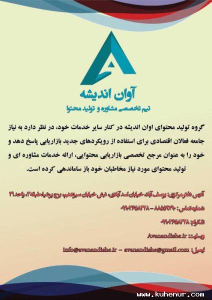 گروه تولید محتوای آوان اندیشه مفتخر است به نیاز جامعه فعالان اقتصادی برای استفاده از رویکردهای جدید بازاریابی پاسخ دهد. و به عنوان مرجع تخصصی بازاریابی محتوایی، ارائه خدمات مشاوره ای و تولید محتوای مورد نیاز مخاطبان ساماندهی کرده است.