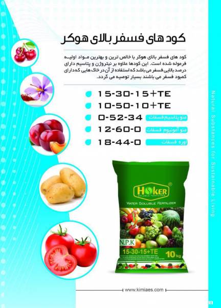 کودهای فسفر بالای هوکر با خالص ترین و بهترین مواد اولیه فرموله شده است. این کود علاوه بر نیتروژن و پتاسیم دارای درصد بالایی فسفر می باشد که استفاده از آن در خاک هایی که دارای کمبود فسفر می باشند بسیار توصیه می گردد.