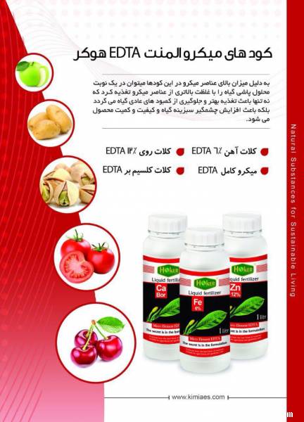یکی از راه های مناسب جهت جبران کمبود عناصر ریزمغذی در گیاهان، محلول پاشی کلات EDTAاین عناصر است که قابلیت جذب بسیار بالایی دارند و با توجه به کلات بودن آن ها تحت تاثیر pH شیره سیتوپلاسمی و آندوپلاسمی قرار نگرفته، رسوب نمی کنند و به طور قابل ملاحظه ای مورد استفاده می گیرند.