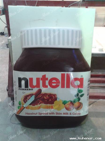 طراحی و ساخت ماکت شیشه شکلات نوتلا به ارتفاع یک متر و بیست سانتی متر با متریال فایبرگلاس در مدت زمان ۴ روز کاری.از این ماکت در دیزاین دفاتر شرکت نوتلا و همچنین دیزاین فروشگاه های نوتلا بار استفاده شده است. در انتها این نکته یادآوری می شود گروه صنعتی آرسین دکور این توانایی را دارد این محصول و محصولات مشابه در هرنوع طرحی را در هر اندازه و هر کیفیتی که شما سفارش دهید در کمترین زمان ممکن و با بالاترین کیفیت ارائه نماید. از این قسمت کاتالوگ ماکت ما را دانلود نمایید. جهت دریافت آخرین اخبار از طریق نرم افزار تلگرام به کانال اختصاصی آرسین دکور بپیوندید.