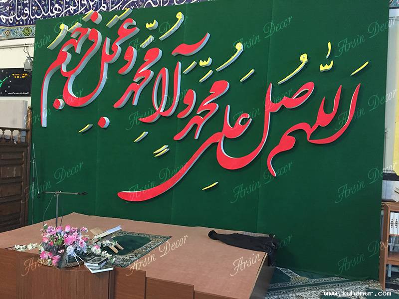 ساخت دکور مذهبی صلوات با متریال فوم با دانسیته بالا جهت دکوراسیون هییت و دکوراسیون مساجد. گروه صنعتی آرسین دکور توانایی این را دارد این محصول و محصولات مشابه در هرنوع طرحی را در هر اندازه و هر کیفیتی که شما سفارش دهید در کمترین زمان ممکن و با بالاترین کیفیت ارائه نماید. شما می توانید از اینجا قیمت فوم دانسیته بالا و قیمت برش استیکر را مطلع شوید. شما می توانید از اینجا کلیه دکورهای مذهبی ما را مشاهده فرمایید. جهت دریافت آخرین اخبار از طریق تلگرام به کانال اختصاصی آرسین دکور بپیوندید.