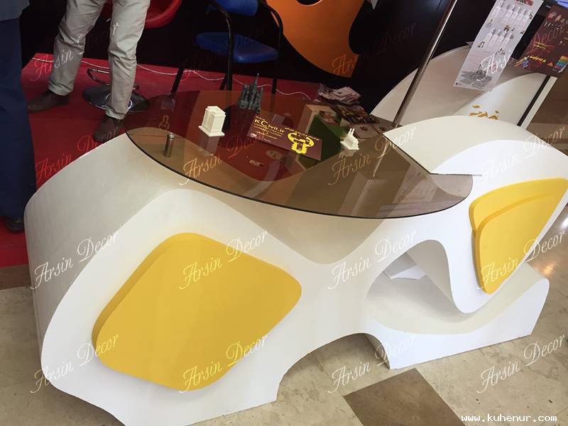 طراحی و ساخت میز Information غرفه نمایشگاهی با طرحی خاص در ابعاد یک متر با متریال فوم با دانسیته بالا. گروه صنعتی آرسین دکور توانایی این را دارد این محصول و محصولات مشابه در هرنوع طرحی را در هر اندازه و هر کیفیتی که شما سفارش دهید در کمترین زمان ممکن و با بالاترین کیفیت ارائه نماید. از این قسمت کاتالوگ ماکت ما را دانلود نمایید. جهت دریافت آخرین اخبار از طریق تلگرام به کانال اختصاصی آرسین دکور بپیوندید.