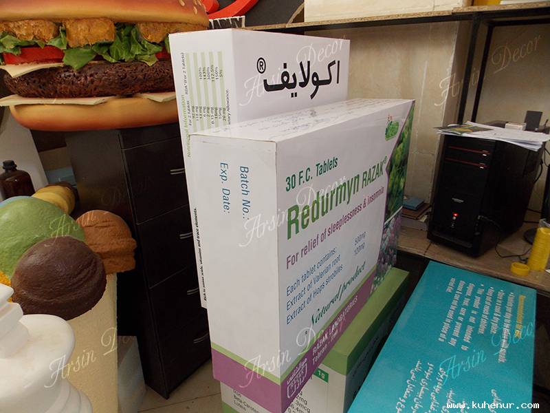 طراحی و ساخت شش عدد ماکت جعبه و قوطی دارویی در ابعاد ۸۰ الی ۱۰۰ سامنتی متر برای شرکت دارویی رازک. روکش مخصوص به کار برده شده در ساخت این ماکت ها، استحکام قابل توجهی را برای این محصولات به ارمغان آورده است. کلیه مراحل طراحی و ساخت این ماکت ها در ۷ روز کاری به انجام رسیده است. در انتها این نکته یادآوری می شود گروه صنعتی آرسین دکور این توانایی را دارد این محصول و محصولات مشابه در هرنوع طرحی را در هر اندازه و هر کیفیتی که شما سفارش دهید در کمترین زمان ممکن و با بالاترین کیفیت ارائه نماید. از این قسمت کاتالوگ ماکت ما را دانلود نمایید. جهت دریافت آخرین اخبار از طریق تلگرام به کانال اختصاصی آرسین دکور بپیوندید.