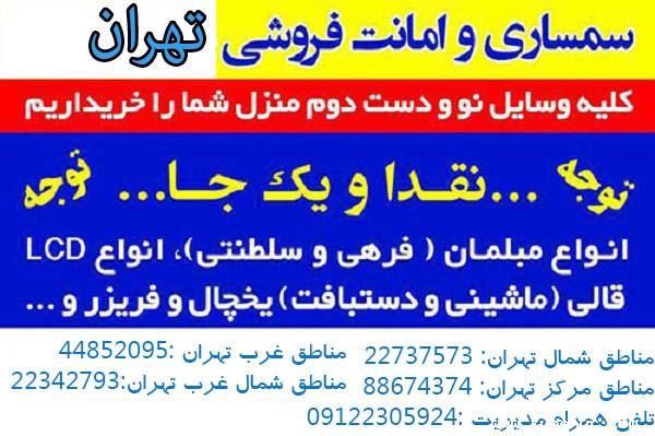 سمساری شرق تهران بهترین خریدار لوازم دست دوم با بالاترین قیمت -منصف ترین خریدار لوازم چوبى -بهترین خریدار مبلمان منزل و اداری-مبلمان استیل و راحتی-خریدار انواع یخچال های فریزر و ساید باید ساید و خریدار انواع فرش دستباف و ماشینی با بهترین قیمت- خریدار لوازم برقی آشپزخانه- خرید انواع گاز رومیزی و بخاری -منصف ترین خریدار ظروف قدیمی و بلور و کریستال با بهترین قیمت