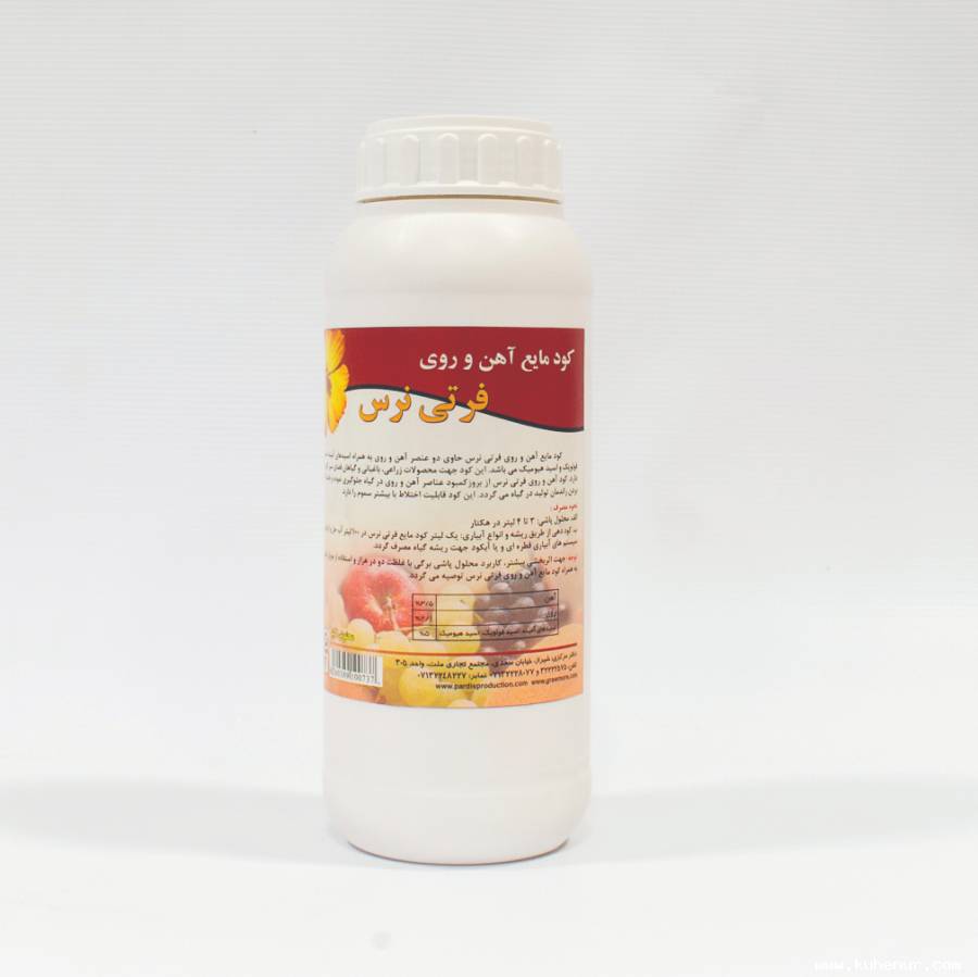 كود مايع آهن و روي حاوي آهن كلاته، روي کلاته، اسيدهاي آمينه، اسيد فولويك و اسيد هيوميك مي باشد. اين كود را مي توان از طريق مخلوط نمودن با خاك، سيستم آبياري قطره اي و يا محلول پاشي به روي برگ ها مصرف نمود. علائم كمبود آهن و روي، زردي رگبرگ ها، كشيدگي برگ هاي جوان و كاهش رشد گياه و ميوه ها مي باشد. كود مايع آهن و روي كيميا با افزايش راندمان توليد گياه باعث افزايش گل دهي و در نهايت افزايش محصول مي گردد. اين كود جهت درختان ميوه، سبزيجات، محصولات زراعي و همچنين گياهان زينتي قابل استفاده مي باشد.