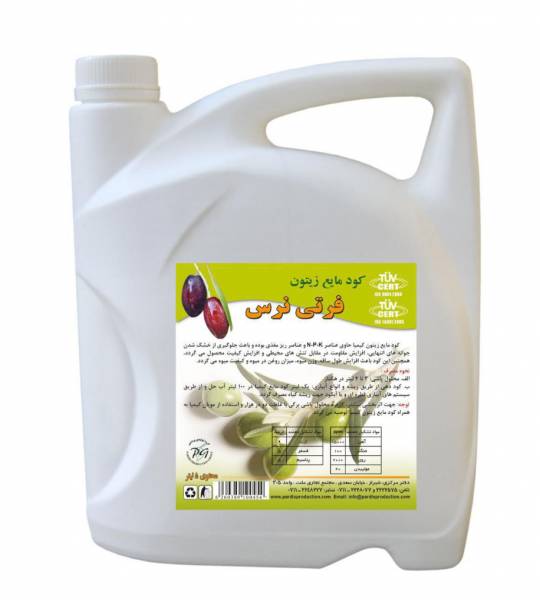 کود مايع زيتون حاوي عناصر N-P-K و عناصر ريز مغذي بوده و باعث جلوگيري از خشک شدن جوانه هاي انتهايي، افزايش مقاومت در مقابل تنش هاي محيطي و افزايش کيفيت محصول مي گردد، همچنين اين کود باعث افزايش طول ساقه، وزن ميوه، ميزان روغن در ميوه و کيفيت ميوه مي گردد.