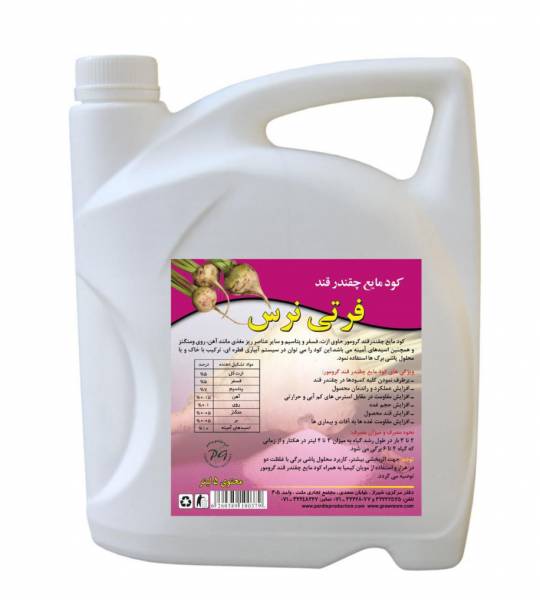 کود مايع چغندرقند حاوي ازت، فسفر و پتاسيم و ساير عناصر ريز مغذي مانند آهن، روي ومنگنز و همچنين اسيدهاي آمينه مي باشد.اين کود را مي توان در سيستم آبياري قطره اي، ترکيب با خاک و يا محلول پاشي برگ ها استفاده نمود.