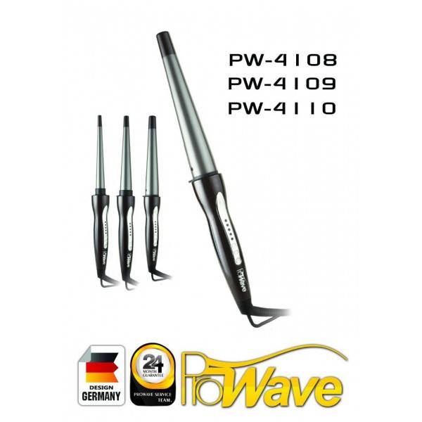 فر کننده مخروطی حرفه ای ProWave مدل Pw-4108 – pw-4109 – pw-4110 نیز از دستگاه هایی هستند که بوسیله ی میله ی مخروطی شکل متصل به بدنه، فرهای کوچکی در مو ایجاد می کنند. هر یک از این مدل ها یک سری با قطر متفاوت دارد که شما می توانید از طریق منوی موجود در سایت سایز مورد نظر خود را انتخاب نمایید. این دستگاه از سری نانوی محصولات شرکت