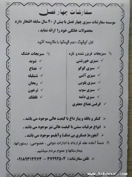 موسسه چهار فصل با ۲۵ سال سابقه فعالیت و دارای مجوز محصولات خانگی ، بهداشتی و با کیفیت خود را ارائه میدهد