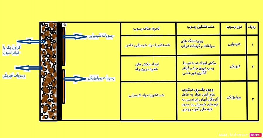 چاه های آب در ایران معمولا بعد از گذشت ۱۰ الی ۱۵ سال آبدهی آنها به نصف کاهش پیدا می کند که علت اصلی این کاهش آبدهی گرفتگی شیارهای جدار از رسوبات شیمیایی و فیزیکی و بیولوژیکی می باشد. که ما با استفاده از روش های مدرن و علمی آبدهی آن ها را به حالت اولیه برمی گردانیم.