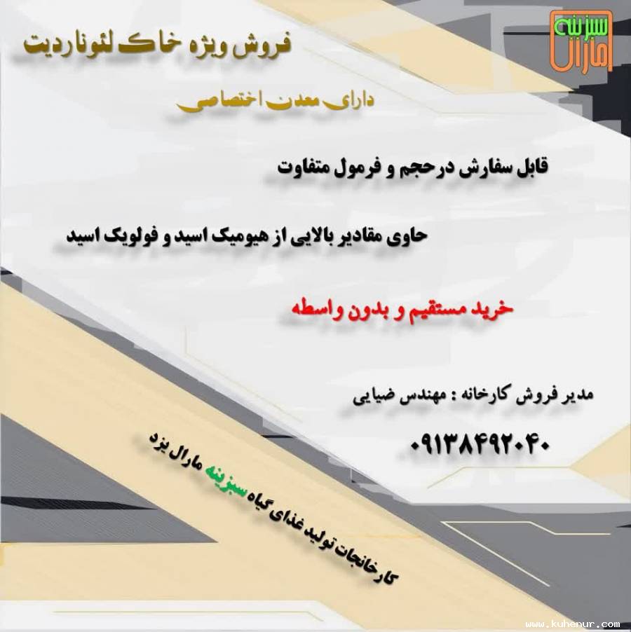 ماده لئوناردیت، یک ماده ارگانیک و طبیعی است، که در تولید کودهای طبیعی بسیار ارزشمند کاربرد دارد.